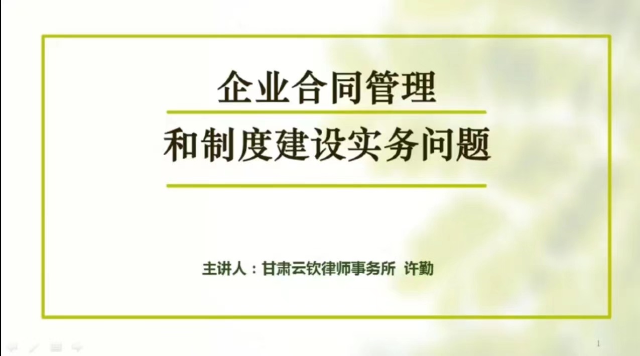 本次培訓(xùn)邀請(qǐng)甘肅云欽律師事務(wù)所許勤律師,從簽訂建設(shè)工程合同時(shí)應(yīng)注意的九個(gè)問(wèn)題、建設(shè)工程合同履行過(guò)程中應(yīng)注意的十個(gè)問(wèn)題、建設(shè)工程竣工結(jié)算時(shí)應(yīng)注意的七個(gè)問(wèn)題、企業(yè)合規(guī)管理與制度建設(shè)四個(gè)方面進(jìn)行了詳細(xì)的講解。