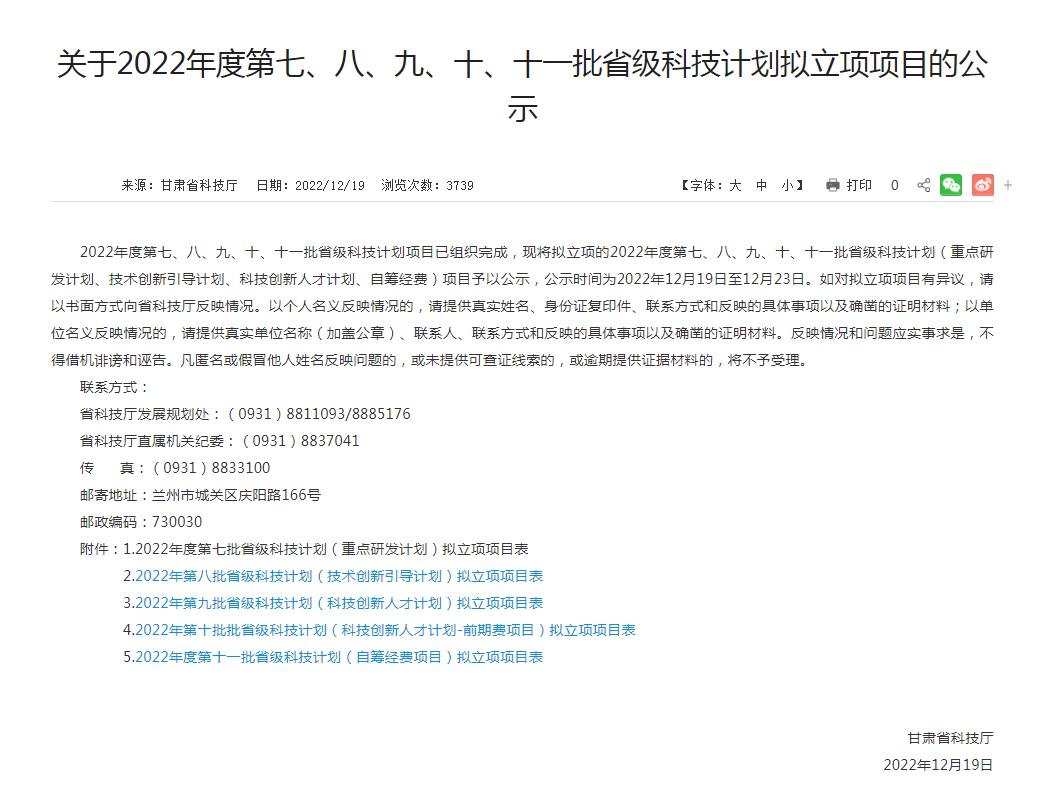 近日,甘肅省科學(xué)技術(shù)廳發(fā)布《關(guān)于2022年度第七、八、九、十、十一批省級(jí)科技計(jì)劃擬立項(xiàng)項(xiàng)目的公示》,甘肅建投裝備公司申報(bào)的甘肅建投裝備產(chǎn)業(yè)技術(shù)研究院建設(shè)項(xiàng)目獲批立項(xiàng),并獲批政府補(bǔ)助資金20萬元,這是裝備公司繼2021年獲批省級(jí)重點(diǎn)研發(fā)項(xiàng)目后又一次獲批省科技廳科技計(jì)劃項(xiàng)目。