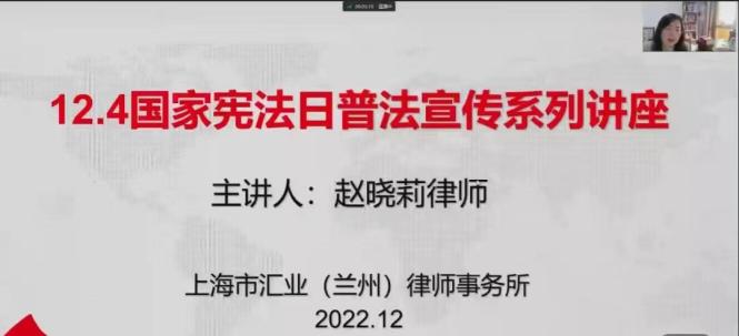 本次講座以線上形式進行,以“學(xué)習(xí)宣傳貫徹黨的二十大精神,推動全面貫徹實施憲法”為主題,邀請了上海市匯業(yè)(蘭州)律師事務(wù)所趙曉莉律師圍繞憲法解讀,憲法的地位、憲法的發(fā)展歷史、我國憲法的架構(gòu)及具體內(nèi)容;民法典之合同熱點解讀,主要就民法典中涉及的電子合同、預(yù)約合同、情勢變更制度等熱點問題進行解讀;公司行業(yè)性質(zhì),就民法典關(guān)于審理建設(shè)工程施工合同糾紛案件適用法律問題的解釋等方面的內(nèi)容進行了專題講解。