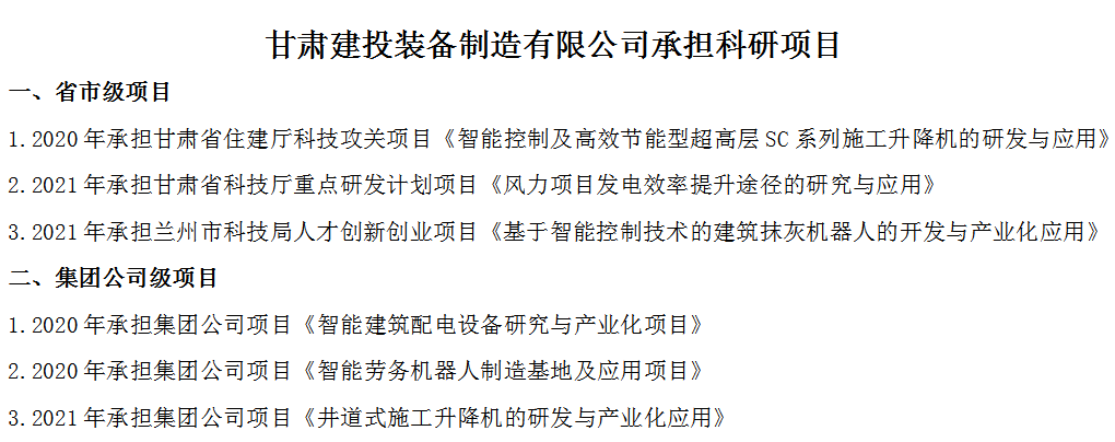 甘肅建投裝備制造有限公司承擔(dān)科研項(xiàng)目