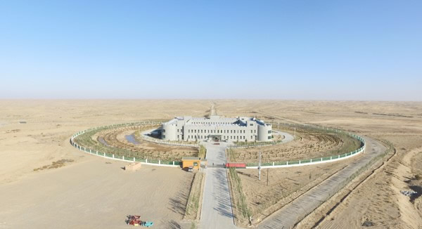 這一年,隨著新能源公司武威涼州區(qū)騰格里沙漠兩千畝試驗沙丘的治理完成,意想不到的治理效果得到了國內(nèi)外專家的高度認可,后續(xù)的十萬畝沙漠試驗基地也得到了批復(fù),這也意味著甘肅建投新能源公司在治沙方面邁出了成功的第一步。在荒蕪人煙的沙漠進行治沙試驗,吃住、辦公面臨巨大問題,之前遠在沙漠作業(yè)的工作人員都是租用附近村落老百姓的廢棄農(nóng)家院進行居住,條件十分艱苦。8月,在拿到設(shè)計圖紙后,沙漠基地綜合樓的建設(shè)迅速展開。