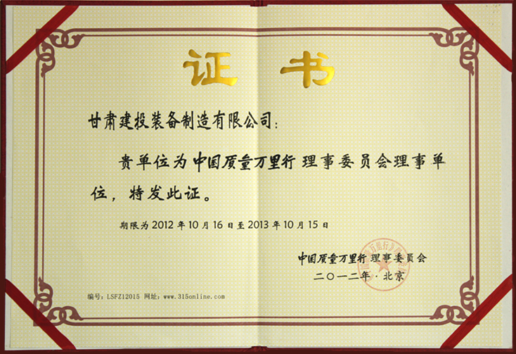 繼2012年8月被評(píng)定為“中國質(zhì)量萬里行質(zhì)量誠信企業(yè)”以來,近日,甘肅建投裝備制造有限公司又憑借在國內(nèi)外良好的品牌知名度和美譽(yù)度被中國質(zhì)量萬里行理事委員會(huì)吸收為理事單位并頒發(fā)了榮譽(yù)證書。