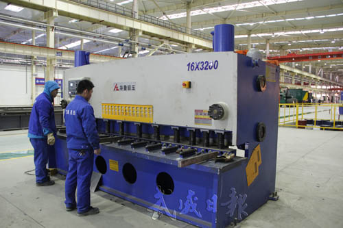 工人在零部件加工區(qū)加緊生產(chǎn)