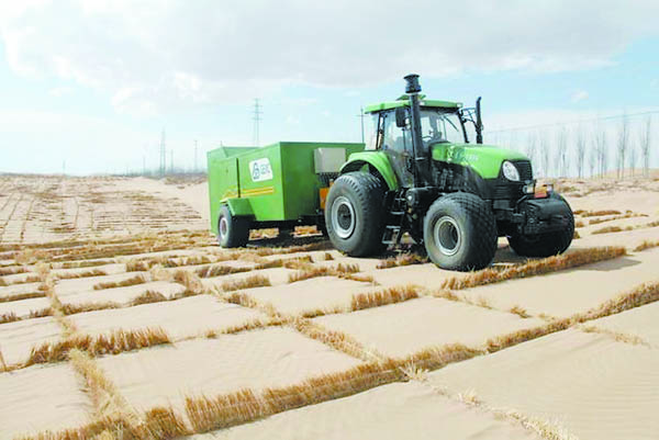目前,"一帶一路"不少相關(guān)國家對"立體固沙車"產(chǎn)生了濃厚興趣,這種中國制造的高效治沙裝備將進入更多的國家,幫助他們抵御沙漠化。